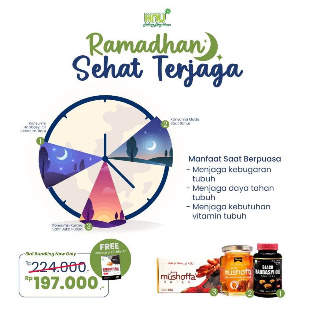 Rutin Konsumsi Black Habbasyi Oil sebagai suplemen untuk menjaga daya tahan tubuh saat menjalani ibadah puasa.
